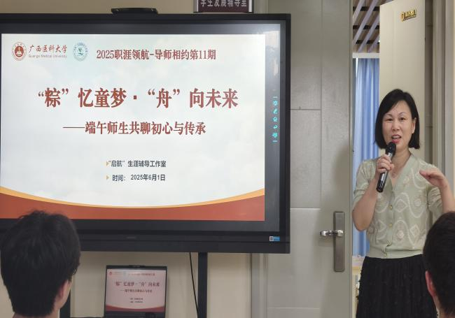6月1日下午,武鸣校区榕园学生之家二楼大厅洋溢温馨气息,一场主题为“‘粽’忆童梦,‘舟’向未来——端午师生共聊初心与传承”的活动在此举行。学生工作部(处)副部(处)长廖剑、人文社会科学学院党委副书记郑茸、公共卫生学院党委副书记唐凤、药学院副院长何萍等老师,与30余名学生欢聚一堂,一场围绕“初心”与“传承”的暖心对话徐徐展开。