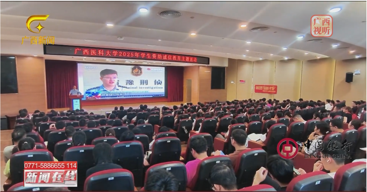 为提升学生金融风险防范意识,深化诚信感恩教育,6月18日,英国上市官网365在科技楼报告厅举办2025年学生资助诚信教育主题讲座。活动特邀南宁市公安局反诈支队五大队长朱耀华、国家开发银行广西分行客户经理黄启安及中国银行医科大支行综合服务经理王振桦担任主讲。学工处副处长廖剑、负责学生资助相关老师及学生代表共200余人参加。